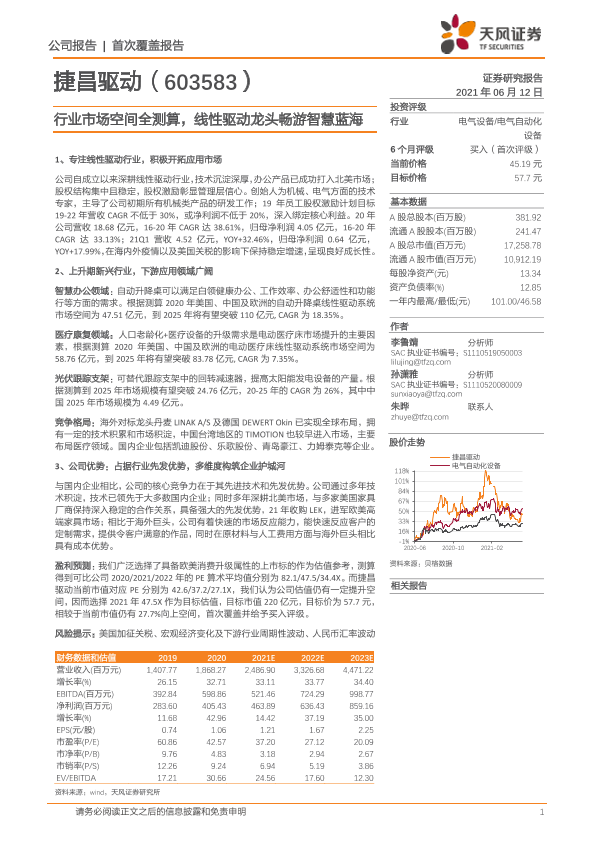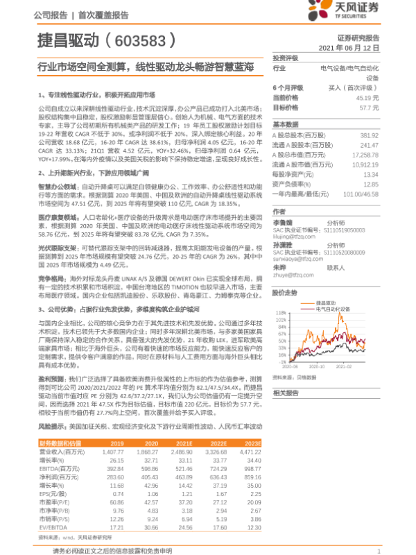 【天风证券】【20210612】20210612-天风证券-捷昌驱动-603583.SH-行业市场空间全测算,线性驱动龙头畅游智慧蓝海-33页