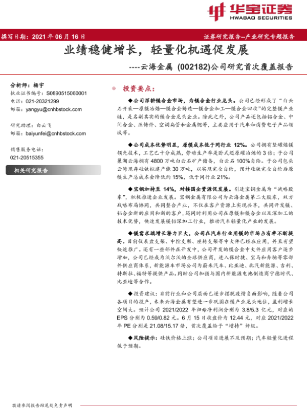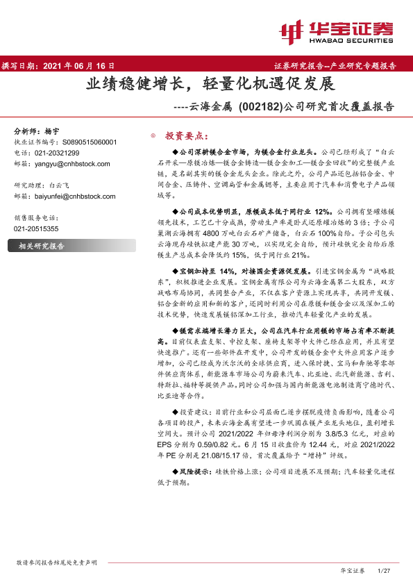 【华宝证券】【20210616】业绩稳健增长,轻量化机遇促发展-27页