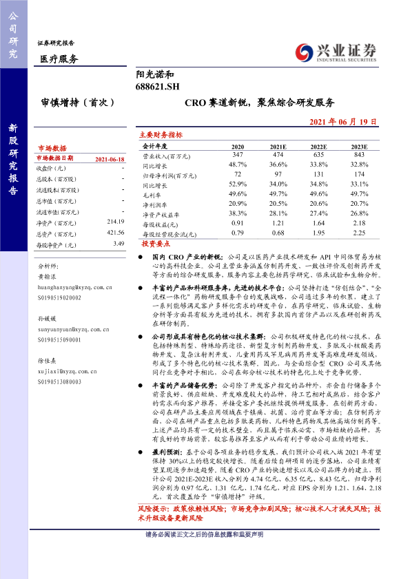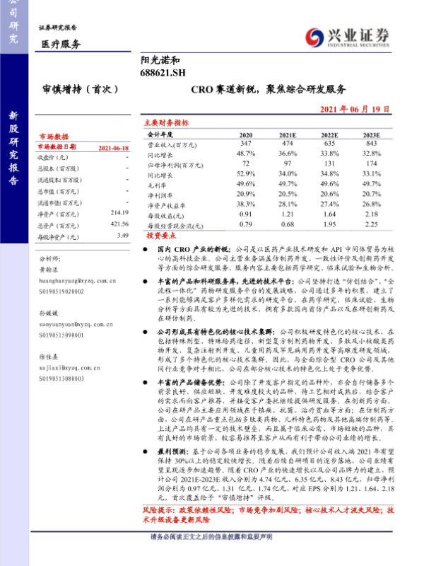 【兴业证券】【20210619】阳光诺和-688621.SH-CRO赛道新锐,聚焦综合研发服务-29页
