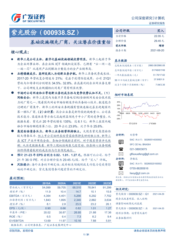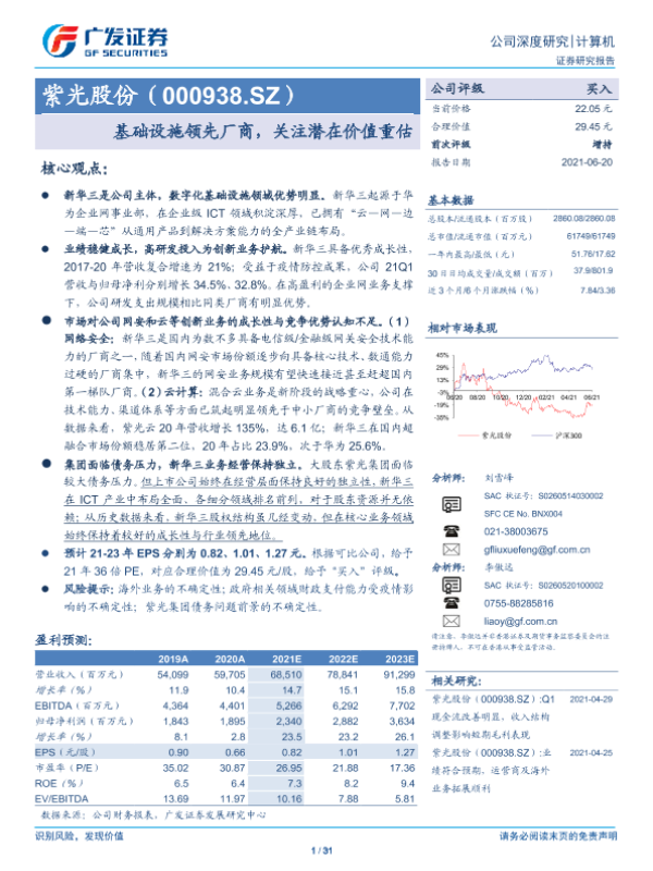 【广发证券】【20210620】20210620-广发证券-紫光股份-000938.SZ-基础设施领先厂商,关注潜在价值重估-31页