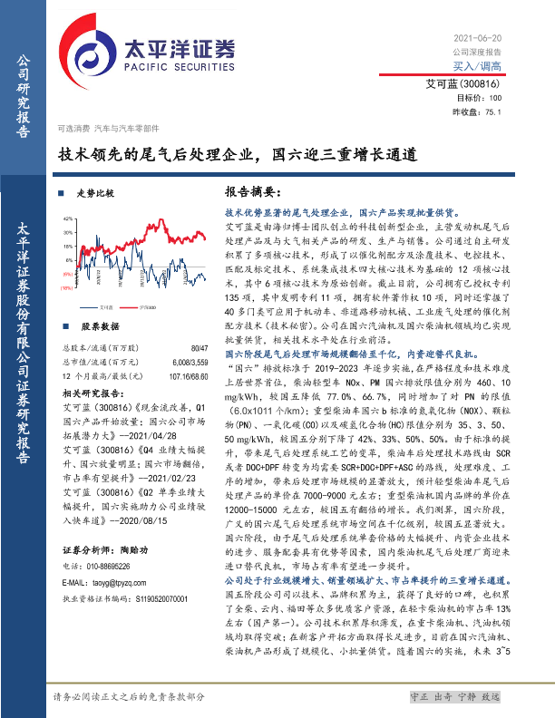 【太平洋证券】【20210620】技术领先的尾气后处理企业,国六迎三重增长通道-23页