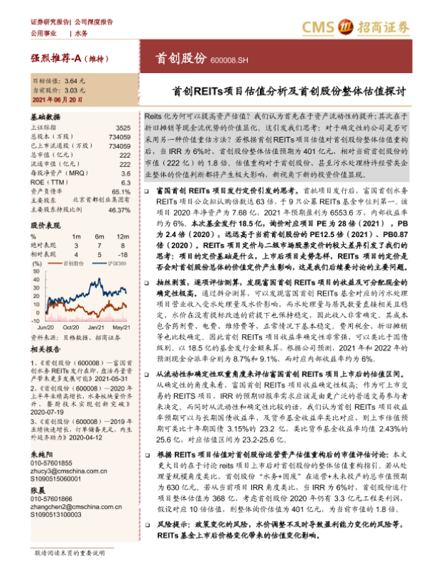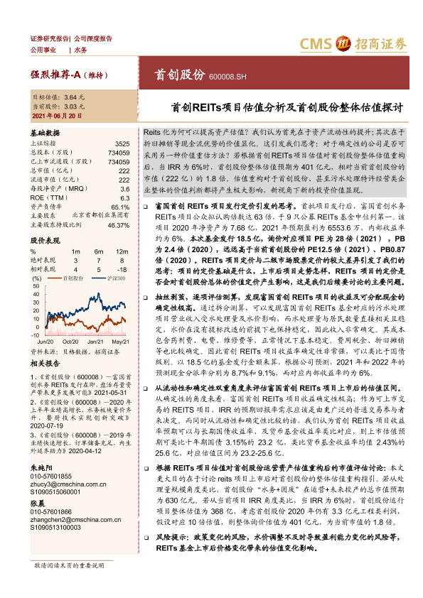 【海通证券】【20210620】首创REITs项目估值分析及首创股份整体估值探讨-26页