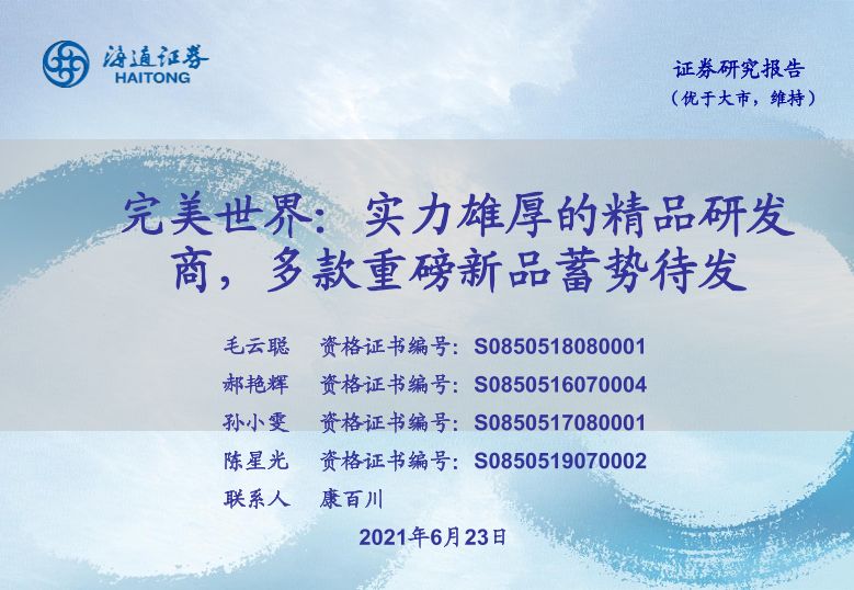 【海通证券】【20210623】完美世界:实力雄厚的精品研发商,多款重磅新品蓄势待发-36页