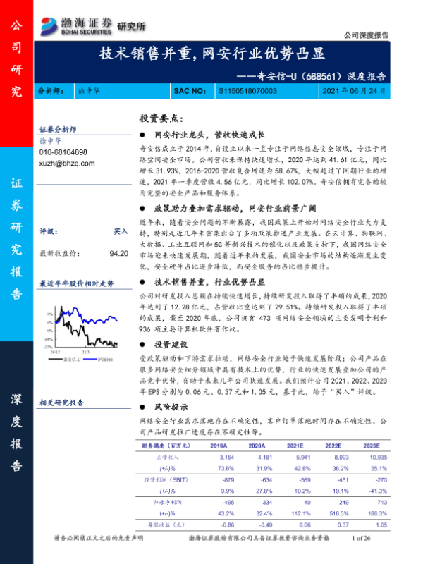 【渤海证券】【20210624】20210624-渤海证券-奇安信-688561.SH-深度报告:技术销售并重,网安行业优势凸显-26页