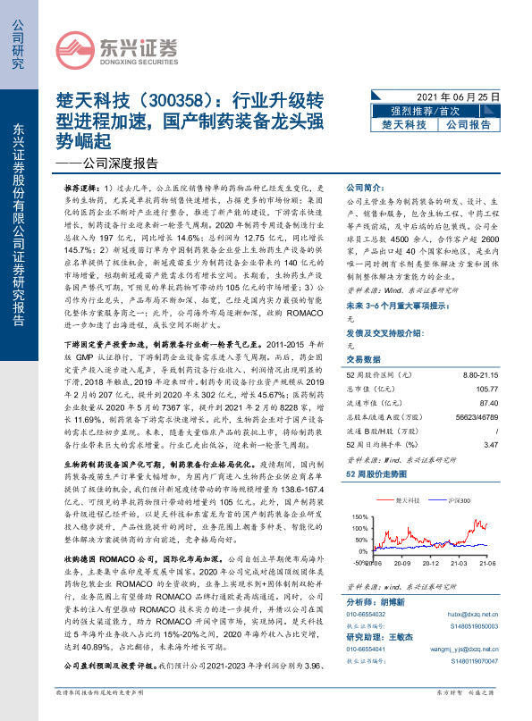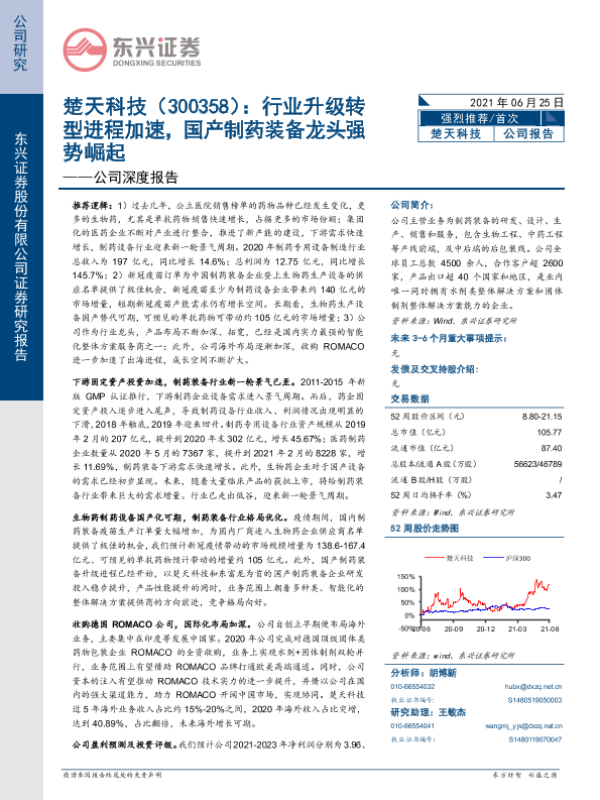 【东兴证券】【20210625】楚天科技:行业升级转型进程加速,国产制药装备龙头强势崛起-24页