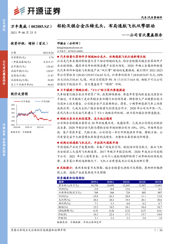 【开源证券】【20210625】万丰奥威-公司首次覆盖报告:铝轮及镁合金压铸龙头,布局通航飞机双擎驱动-26页