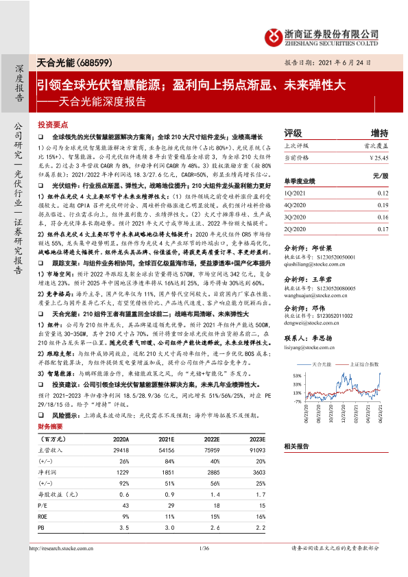 【浙商证券】【20210624】天合光能深度报告:引领全球光伏智慧能源;盈利向上拐点渐显、未来弹性大-36页