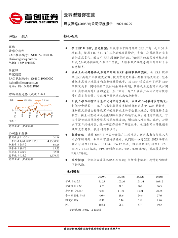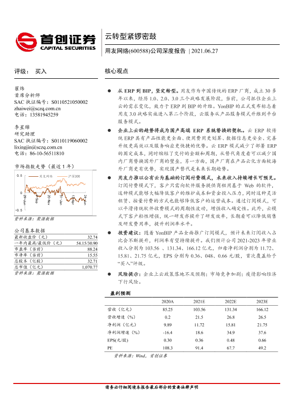 【首创证券】【20210627】20210627-首创证券-用友网络-600588.SH-公司深度报告:云转型紧锣密鼓-38页