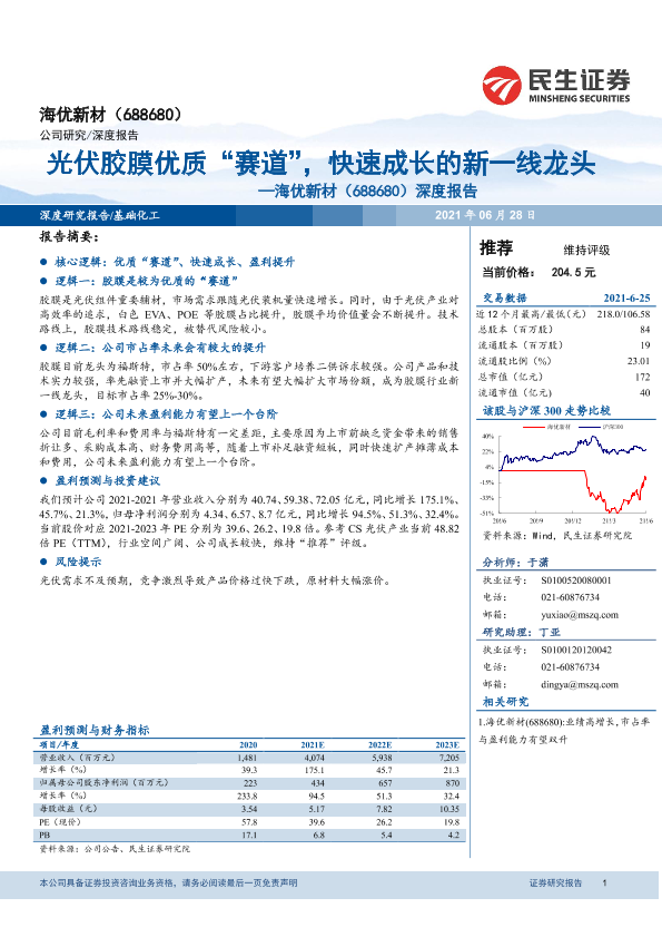 【民生证券】【20210628】20210628-民生证券-海优新材-688680.SH-深度报告:光伏胶膜优质“赛道”,快速成长的新一线龙头-24页