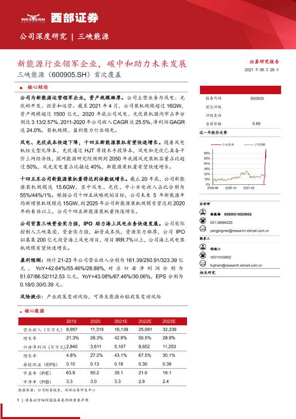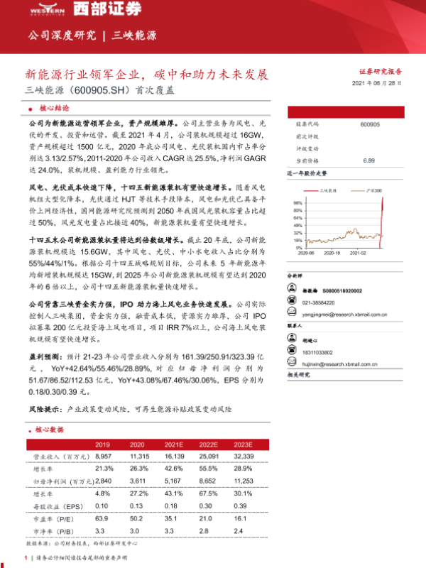 【西部证券】【20210628】20210628-西部证券-三峡能源-600905.SH-首次覆盖:新能源行业领军企业,碳中和助力未来发展-36页