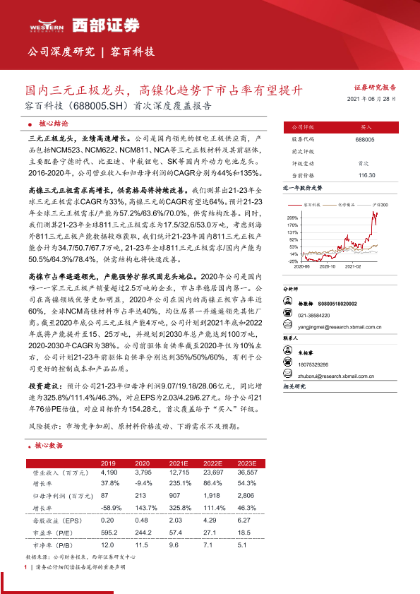 【西部证券】【20210628】国内三元正极龙头,高镍化趋势下市占率有望提升-35页