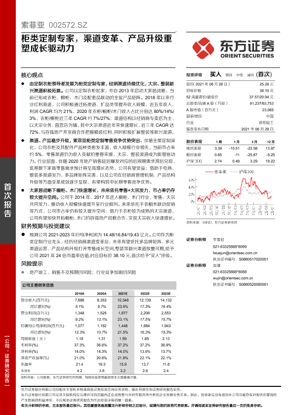 【东方证券】【20210629】索菲亚 002572.SZ 柜类定制专家,渠道变革、产品升级重塑成长驱动力-28页
