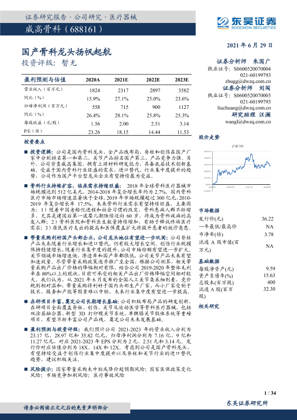 【东吴证券】【20210629】威高骨科-688161.SH-国产骨科龙头扬帆起航-34页