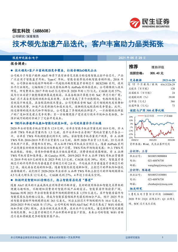 【民生证券】【20210629】恒玄科技(688608):技术领先加速产品迭代,客户丰富助力品类拓张-35页