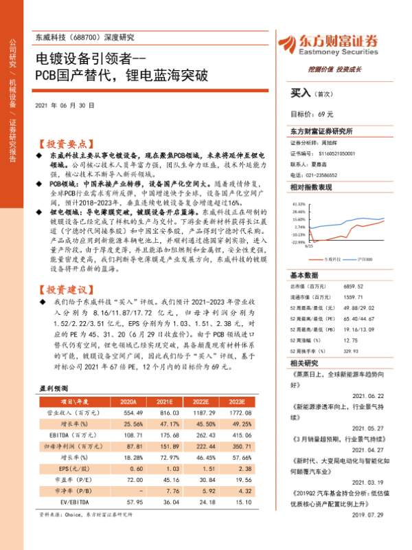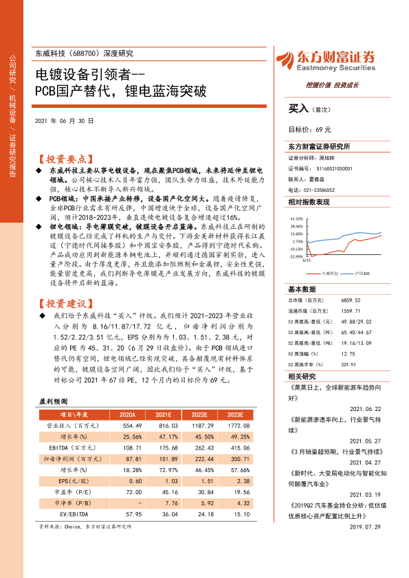 【东方财富证券】【20210630】东威科技(688700)深度研究:电镀设备引领者--PCB国产替代,锂电蓝海突破-26页
