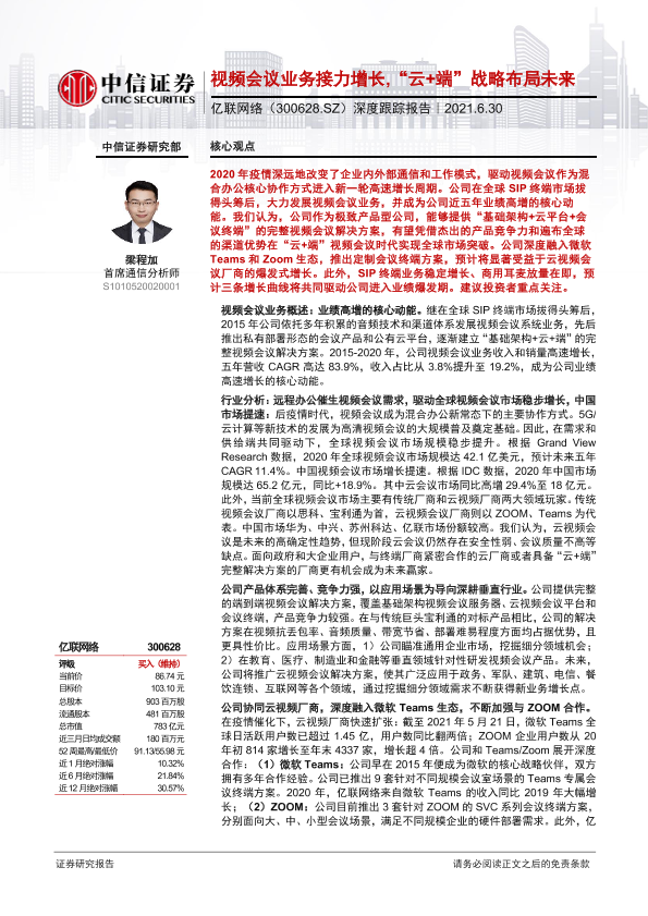 【中信证券】【20210630】20210630-中信证券-亿联网络-300628.SZ-深度跟踪报告:视频会议业务接力增长,“云+端”战略布局未来-41页