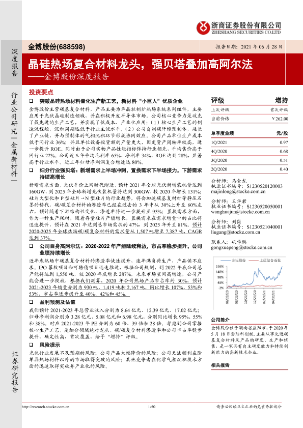 【浙商证券】【20210628】金博股份深度报告:晶硅热场复合材料龙头,强贝塔叠加高阿尔法-50页