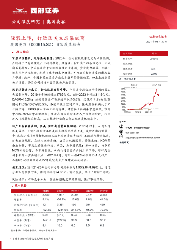 【西部证券】【20210630】奥园美谷-000615.SZ-首次覆盖报告:轻装上阵,打造医美生态集成商-33页