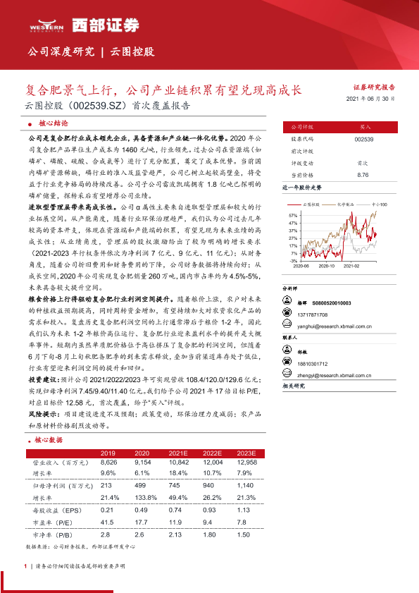 【西部证券】【20210630】云图控股-002539.SZ-首次覆盖报告:复合肥景气上行,公司产业链积累有望兑现高成长-41页