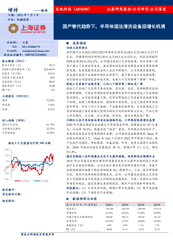 【上海证券】【20210701】国产替代趋势下,半导体湿法清洗设备迎增长机遇-41页