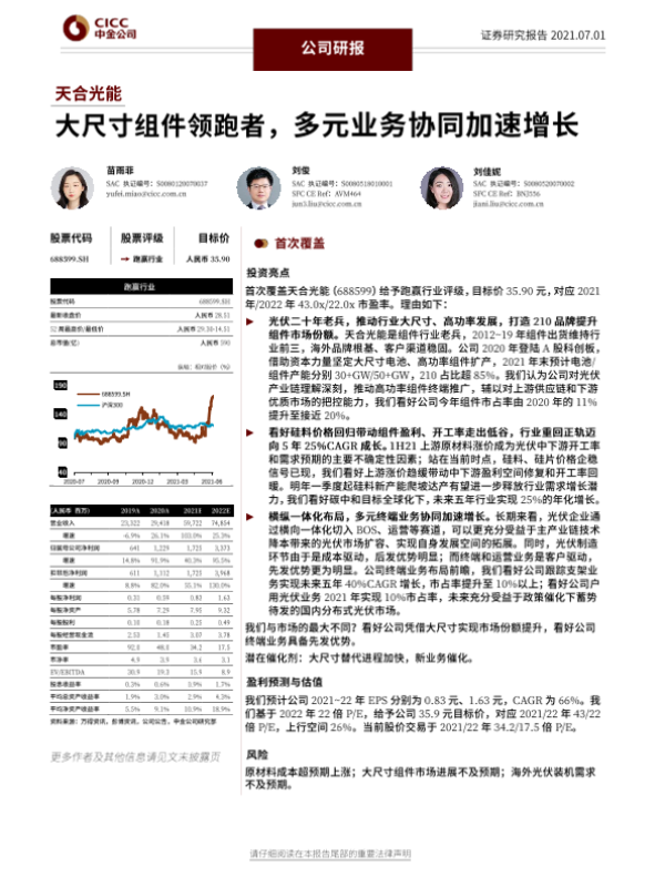 【中金公司】【20210701】天合光能-大尺寸组件领跑者,多元业务协同加速增长-32页