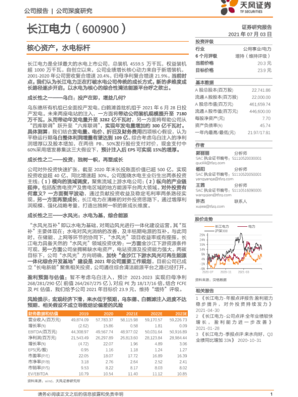【天风证券】【20210703】长江电力-600900.SH-核心资产,水电标杆-32页