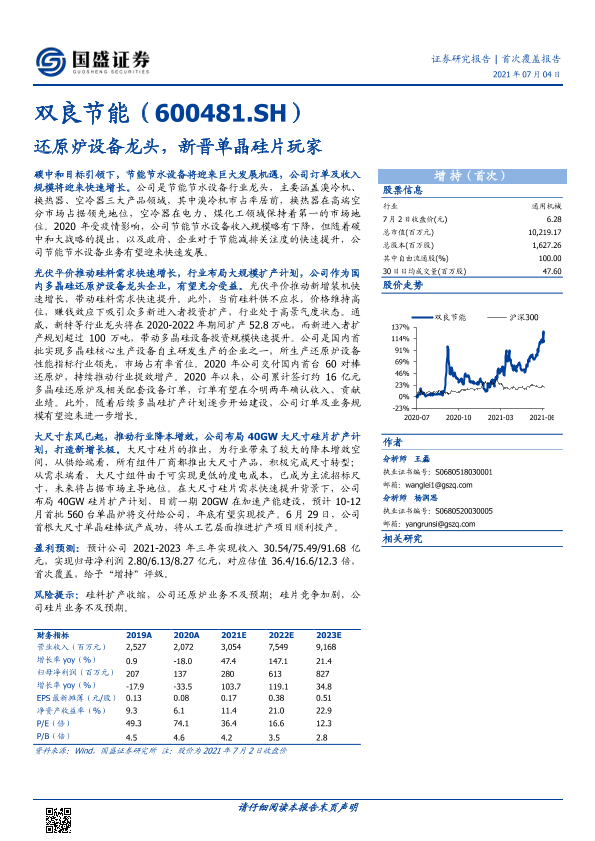 【国盛证券】【20210704】双良节能-600481.SH-还原炉设备龙头,新晋单晶硅片玩家-22页