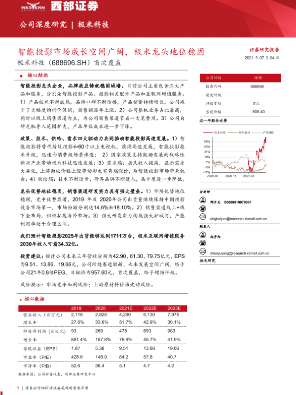 【西部证券】【20210704】20210704-西部证券-极米科技-688696.SH-首次覆盖:智能投影市场成长空间广阔,极米龙头地位稳固-40页
