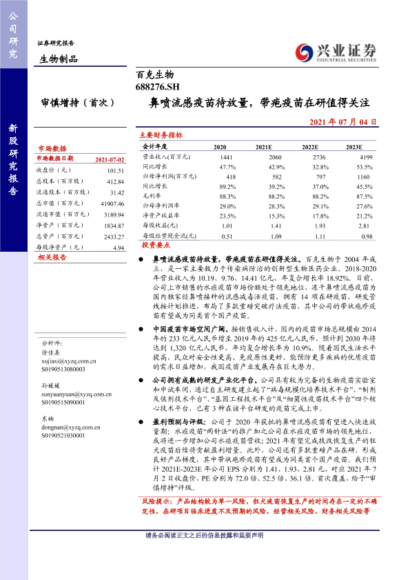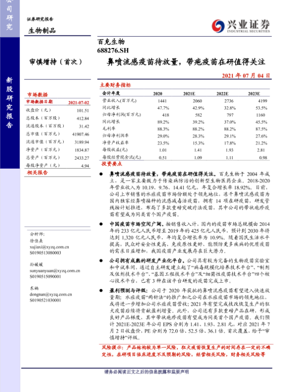 【兴业证券】【20210704】百克生物-688276.SH-鼻喷流感疫苗待放量,带疱疫苗在研值得关注-26页