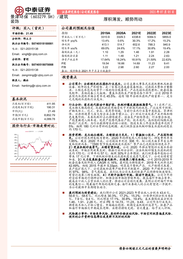 【中泰证券】【20210705】20210705-中泰证券-景津环保-603279.SH-厚积薄发,顺势而动-26页