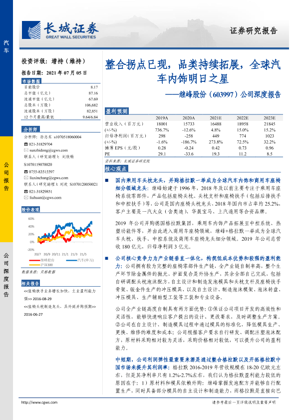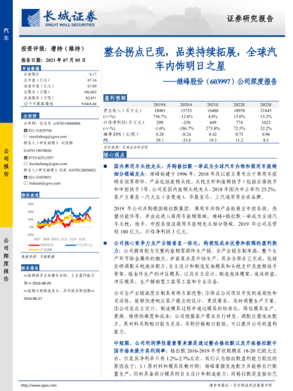 【长城证券】【20210705】20210705-长城证券-继峰股份-603997.SH-公司深度报告:整合拐点已现,品类持续拓展,全球汽车内饰明日之星-31页