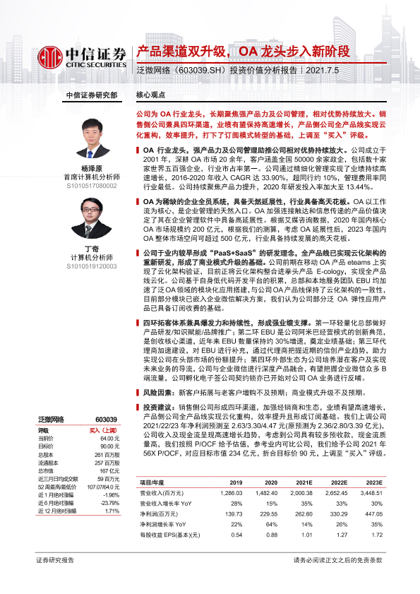 【中信证券】【20210705】产品渠道双升级,OA龙头步入新阶段-33页
