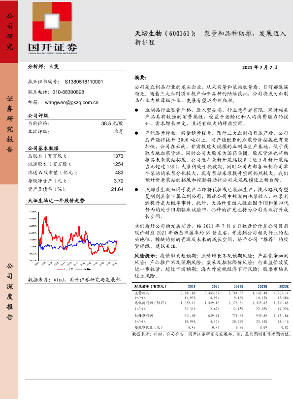 【国开证券】【20210707】天坛生物:浆量和品种助推,发展迈入新征程-22页