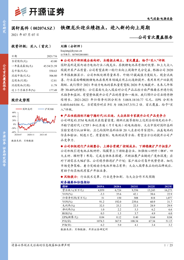 【开源证券】【20210707】国轩高科-公司首次覆盖报告:铁锂龙头迎业绩拐点,进入新的向上周期-25页