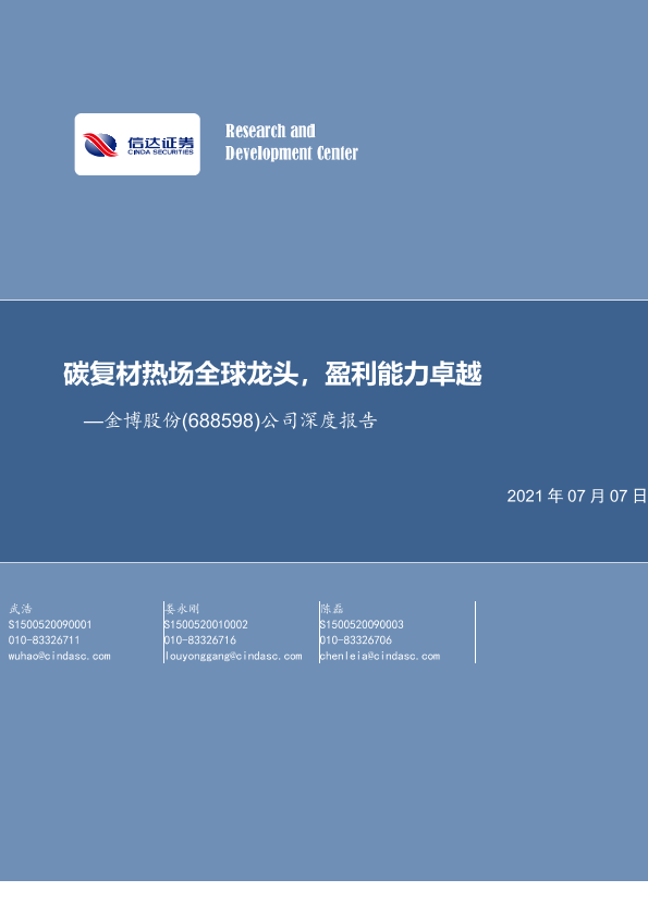 【信达证券】【20210707】20210707-信达证券-金博股份-688598.SH-公司深度报告:碳复材热场全球龙头,盈利能力卓越-24页