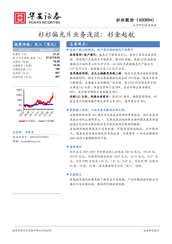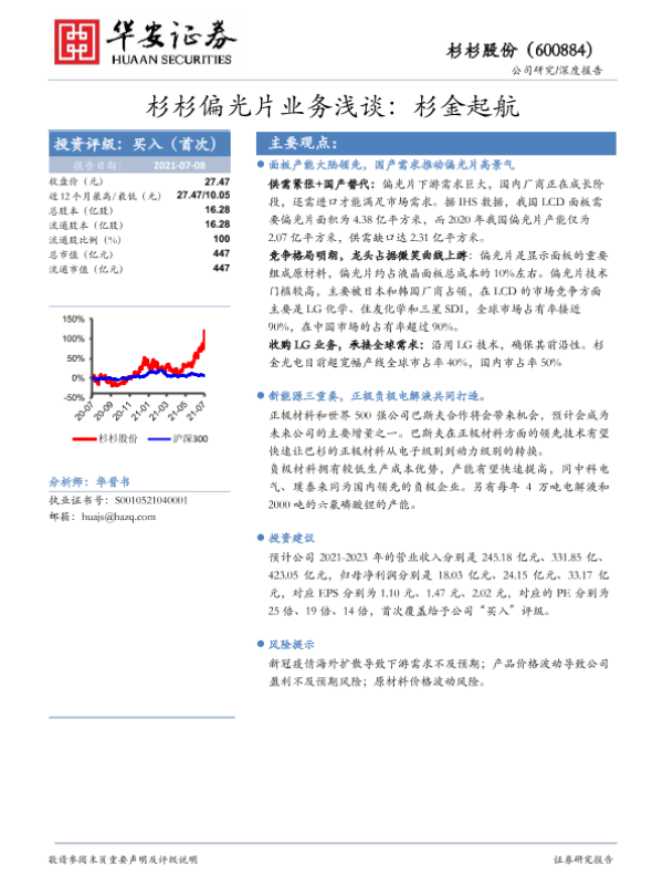 【华安证券】【20210708】杉杉偏光片业务浅谈:杉金起航-20页