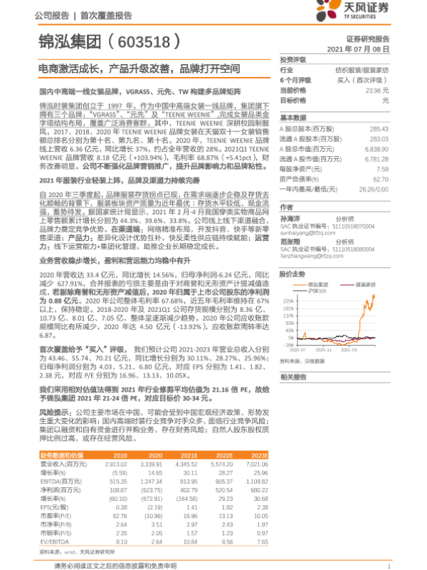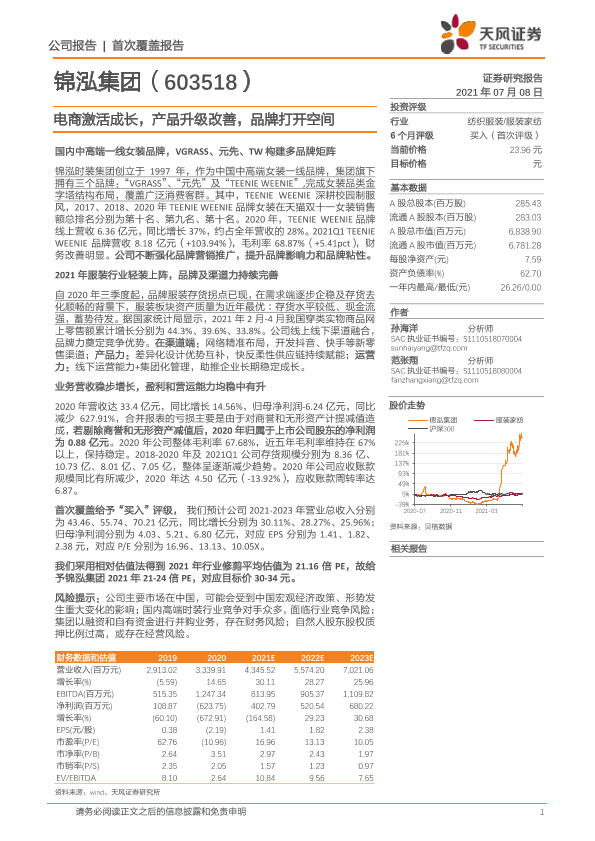【天风证券】【20210708】20210708-天风证券-锦泓集团-603518.SH-电商激活成长,产品升级改善,品牌打开空间-22页
