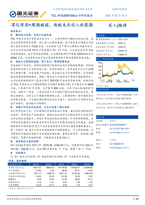 【国元证券】【20210710】深化布局+周期减弱,面板龙头迈入收获期-53页
