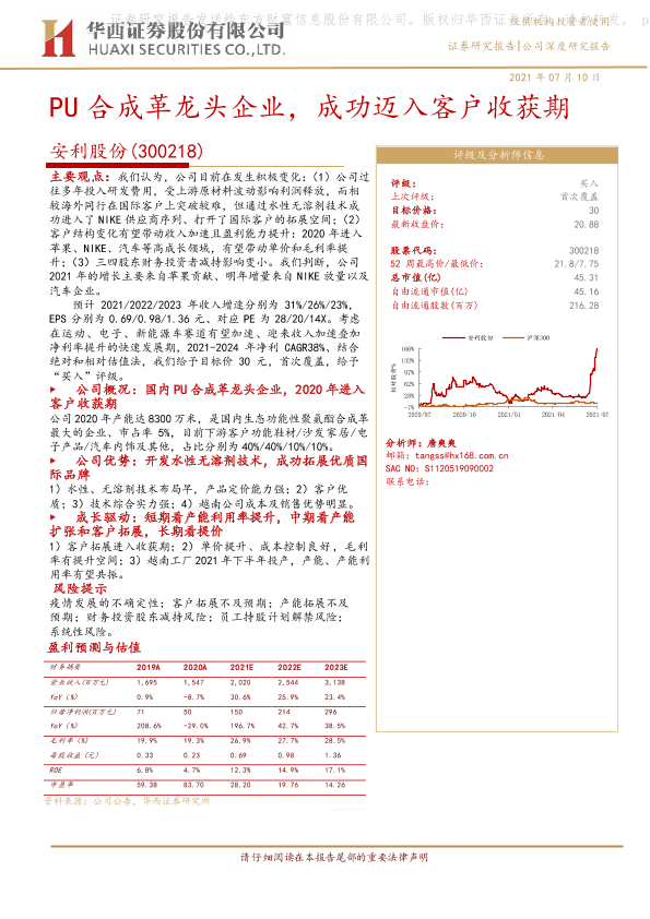 【华西证券】【20210710】PU合成革龙头企业,成功迈入客户收获期-30页