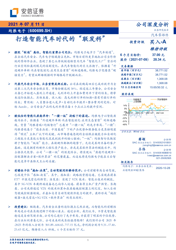 均胜电子 智能座舱 汽车安全 汽车电子 自动驾驶