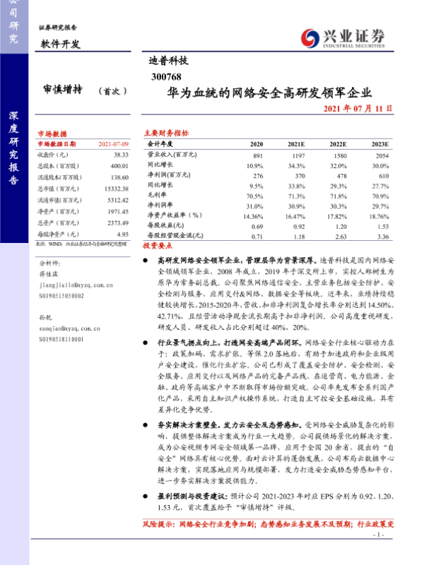 【兴业证券】【20210711】华为血统的网络安全高研发领军企业-25页