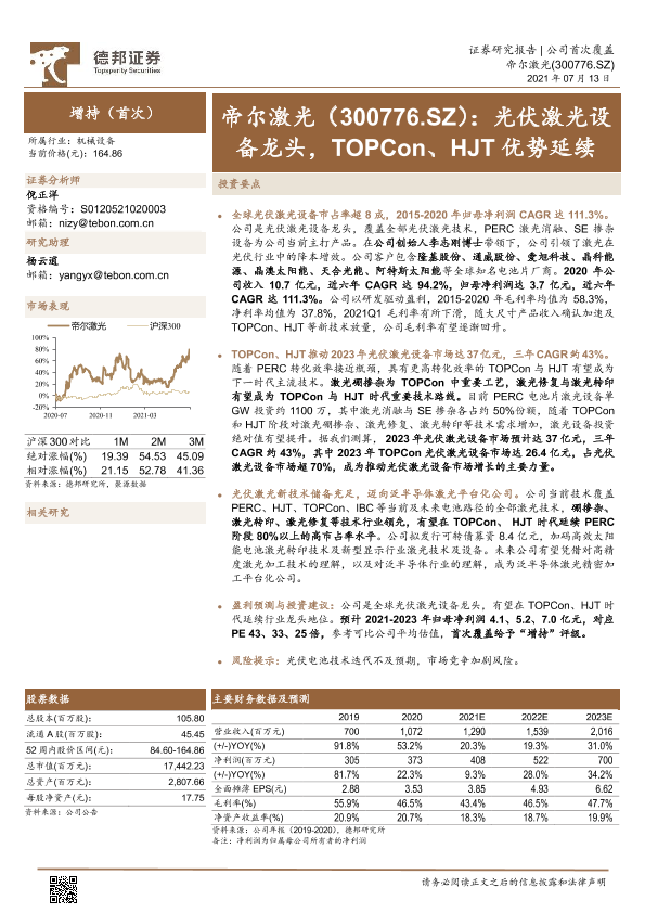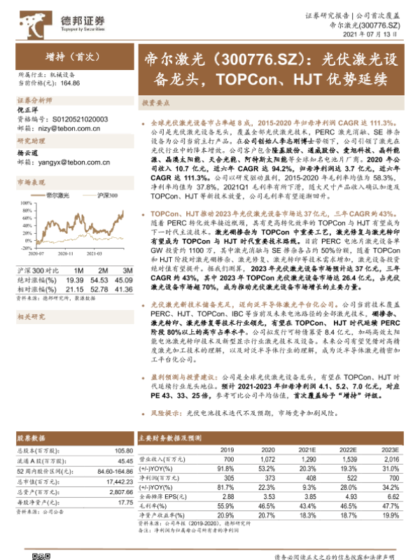 【德邦证券】【20210713】20210713-德邦证券-帝尔激光-300776.SZ-光伏激光设备龙头,TOPCon、HJT优势延续-31页
