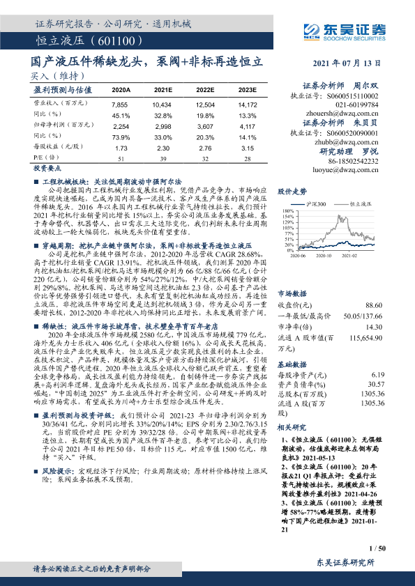 【东吴证券】【20210713】国产液压件稀缺龙头,泵阀+非标再造恒立-50页