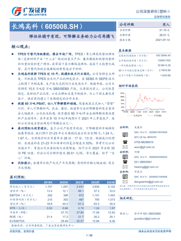 【广发证券】【20210714】长鸿高科-605008.SH-弹性体稳中有进,可降解业务助力公司再腾飞-22页