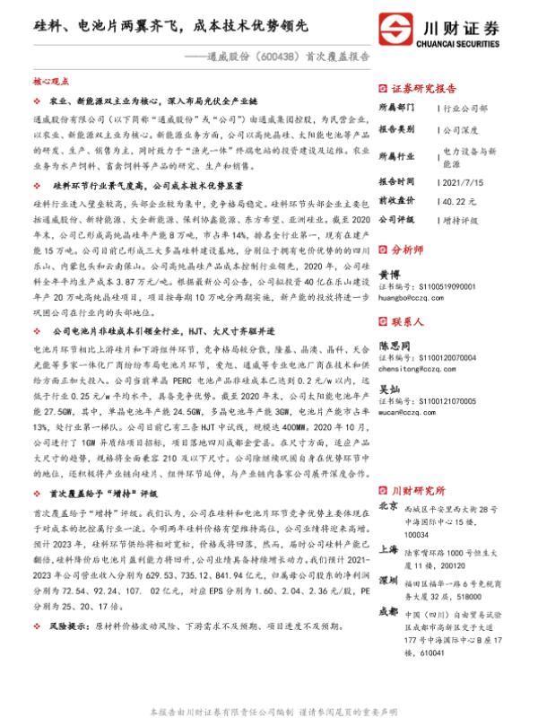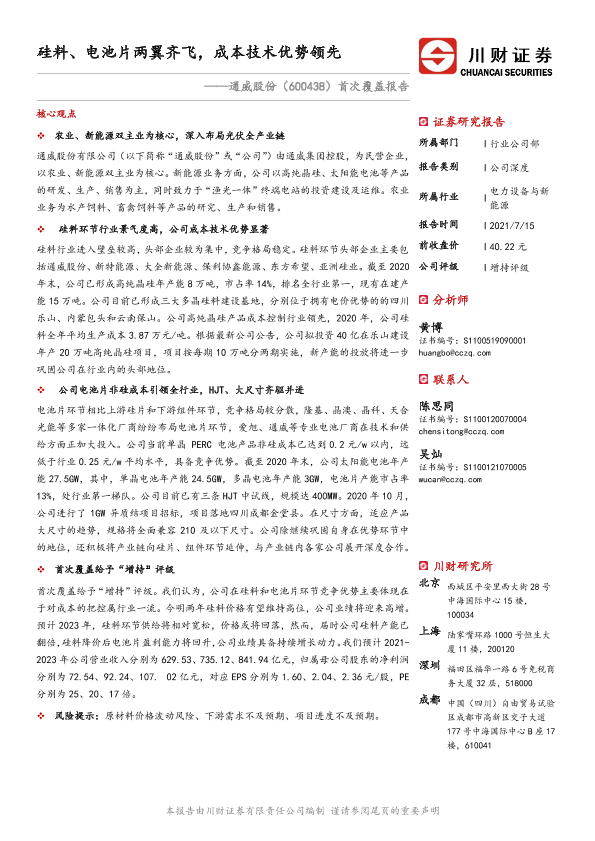 【川财证券】【20210715】20210715-川财证券-通威股份-600438.SH-首次覆盖报告:硅料、电池片两翼齐飞,成本技术优势领先-35页