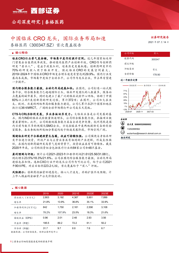 【西部证券】【20210714】20210714-西部证券-泰格医药-300347.SZ-首次覆盖报告:中国临床CRO龙头,国际业务布局加速-35页