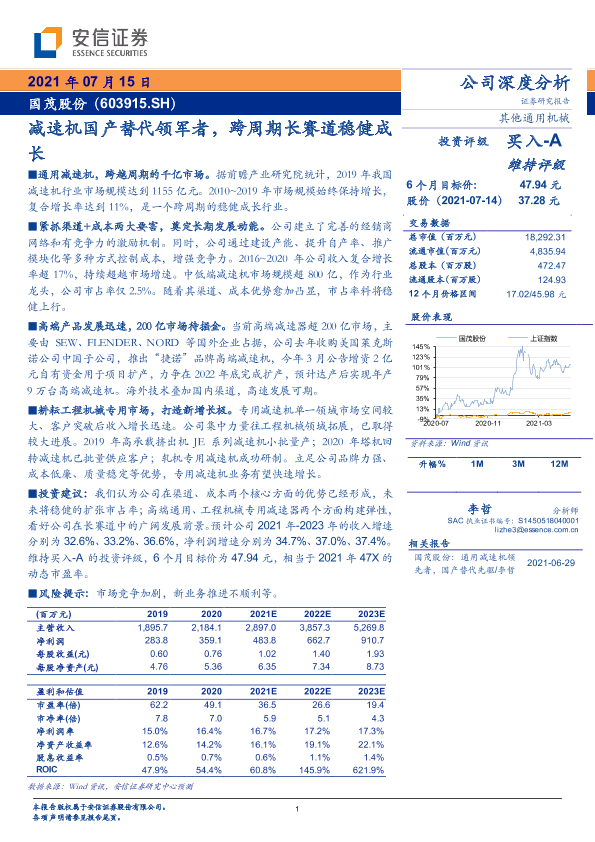 【安信证券】【20210715】减速机国产替代领军者,跨周期长赛道稳健成长-25页