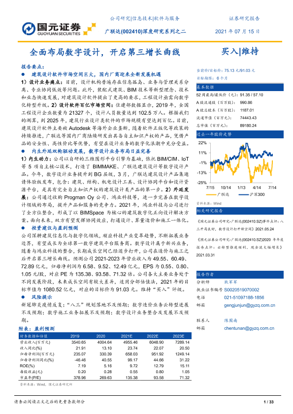 【国元证券】【20210715】广联达-002410.SZ-深度研究系列之二:全面布局数字设计,开启第三增长曲线-33页