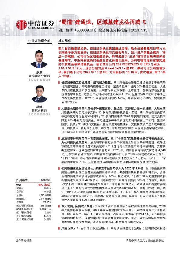 【中信证券】【20210715】20210715-中信证券-四川路桥-600039.SH-投资价值分析报告:“蜀道”建通途,区域基建龙头再腾飞-41页