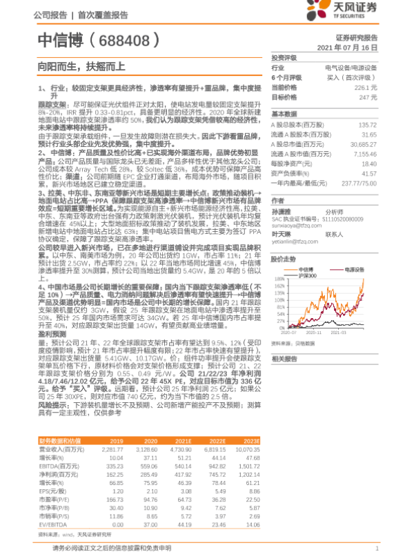 中信博 光伏产业 新兴市场 电气设备 跟踪支架